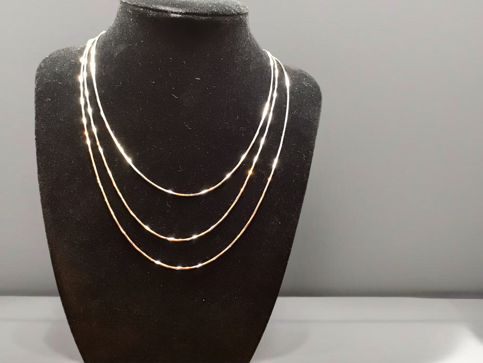 The 3 Layer Herringbone- Necklace is crafted with a sturdy and stylish chain, providing a touch of elegance to your wardrobe. Choose from Gold or Silver for a luxurious accessory.