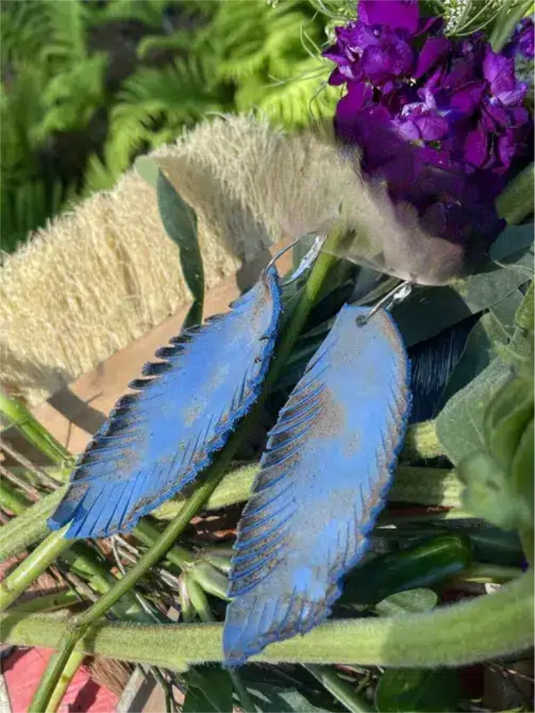 Exquisitely crafted from hand-cut, distressed leather, these earrings offer a unique charm in a wide range of colors. Each pair is exceptionally lightweight and distinctly individual, making them a standout accessory.