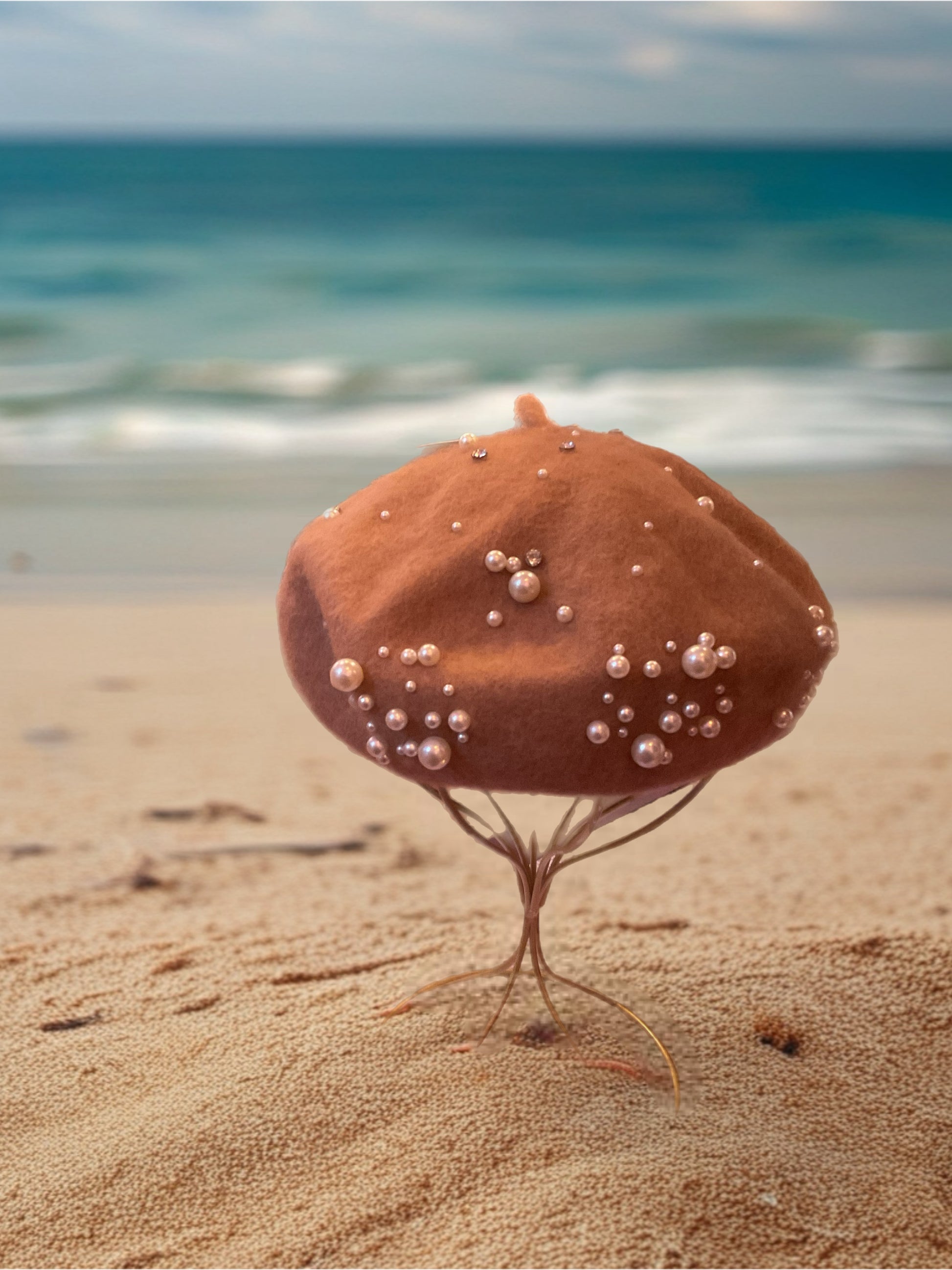 Elevate your accessory collection with these sophisticated beret hats, featuring lustrous pearl and sparkling stud embellishments. The refined combination of classic beret silhouettes with contemporary embellished detailing creates a versatile piece that transitions seamlessly from casual to upscale occasions. Perfect for adding an understated touch of glamour to any ensemble.