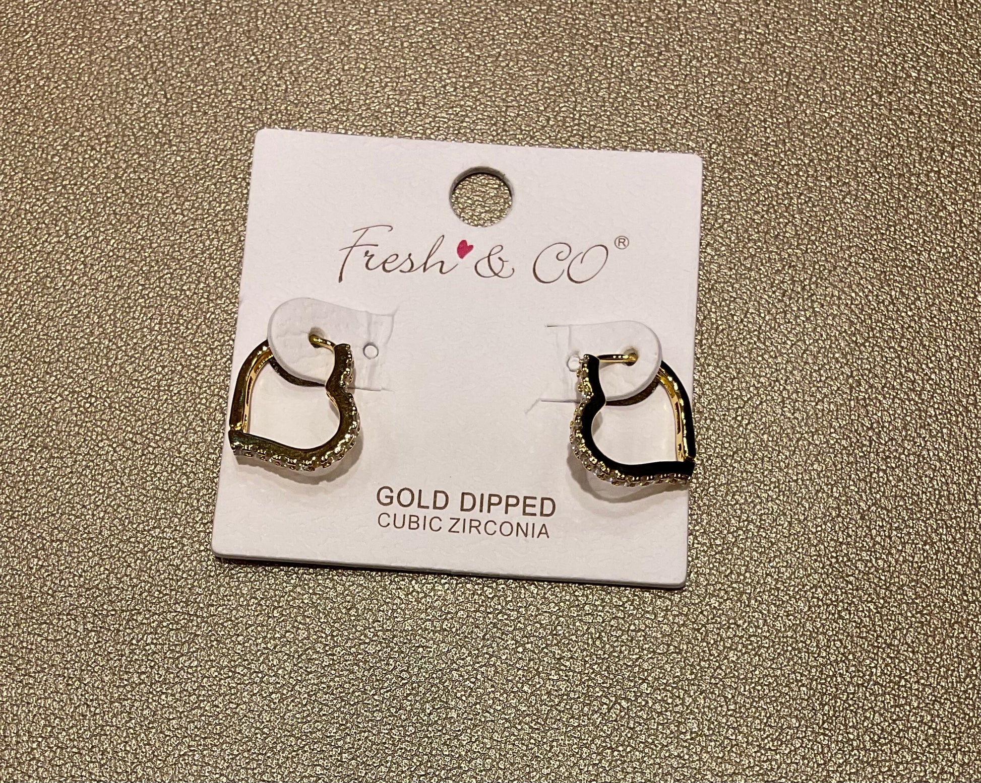 Small heart-shaped hoop earrings outlined with small-cut diamonds.
