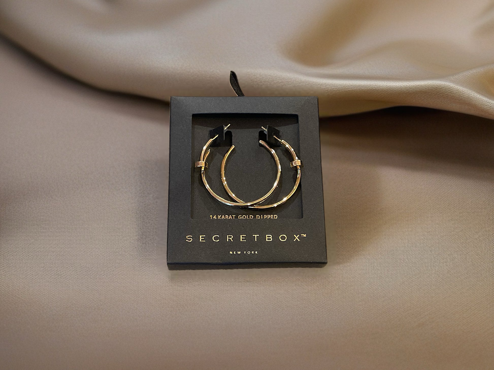 These striking hoop earrings feature a distinctive nail-inspired silhouette crafted in lustrous gold. The refined design combines contemporary geometry with timeless elegance, making them a versatile statement piece that elevates any ensemble. Perfect for those who appreciate bold, unconventional jewelry with sophisticated appeal.