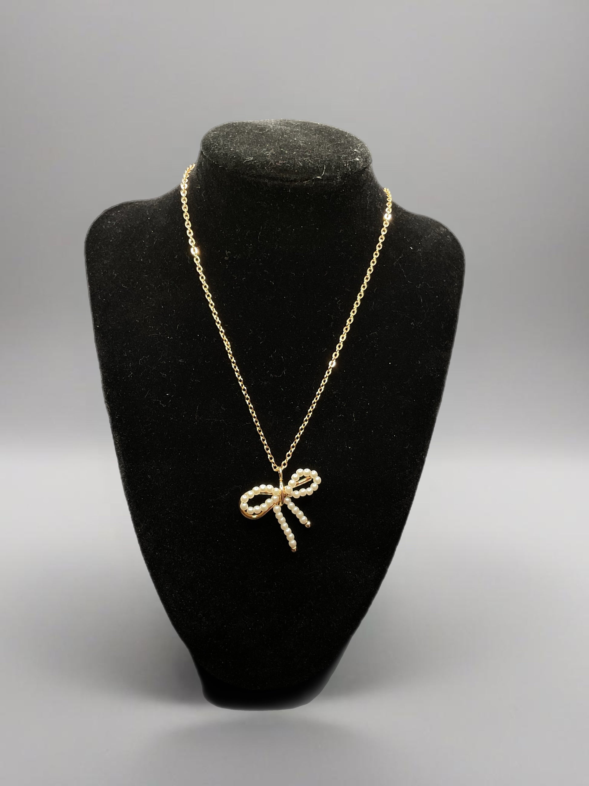 Elevate your look with our Pearly Luxury Necklace. This classy gold chain boasts an elegant pearl bow, adding a touch of sophistication to any outfit. The perfect blend of style and quality, our necklace is a must-have for any fashion-forward individual.