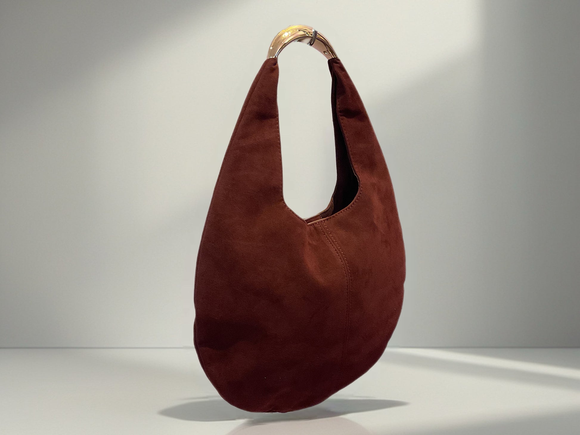 This Faux Suede Leather Hobo Bag features a supple, relaxed shape complemented by a polished metal handle. Crafted from textured faux suede, it showcases a refined center seam for understated elegance. Ideal for casual outings like coffee dates or weekend markets, this purse enhances your ensemble with a sophisticated, laid-back charm.