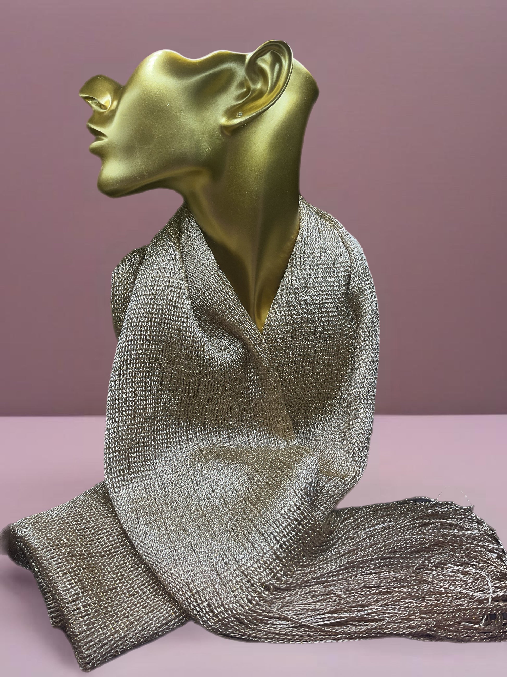 Add a touch of elegance to any outfit with our Solid Gold shimmer scarf. Made with real gold fibers, this scarf will add a luxurious shine and texture. The perfect accessory for any special occasion or to elevate your everyday style. Experience the beauty of gold with our Solid Gold scarf.