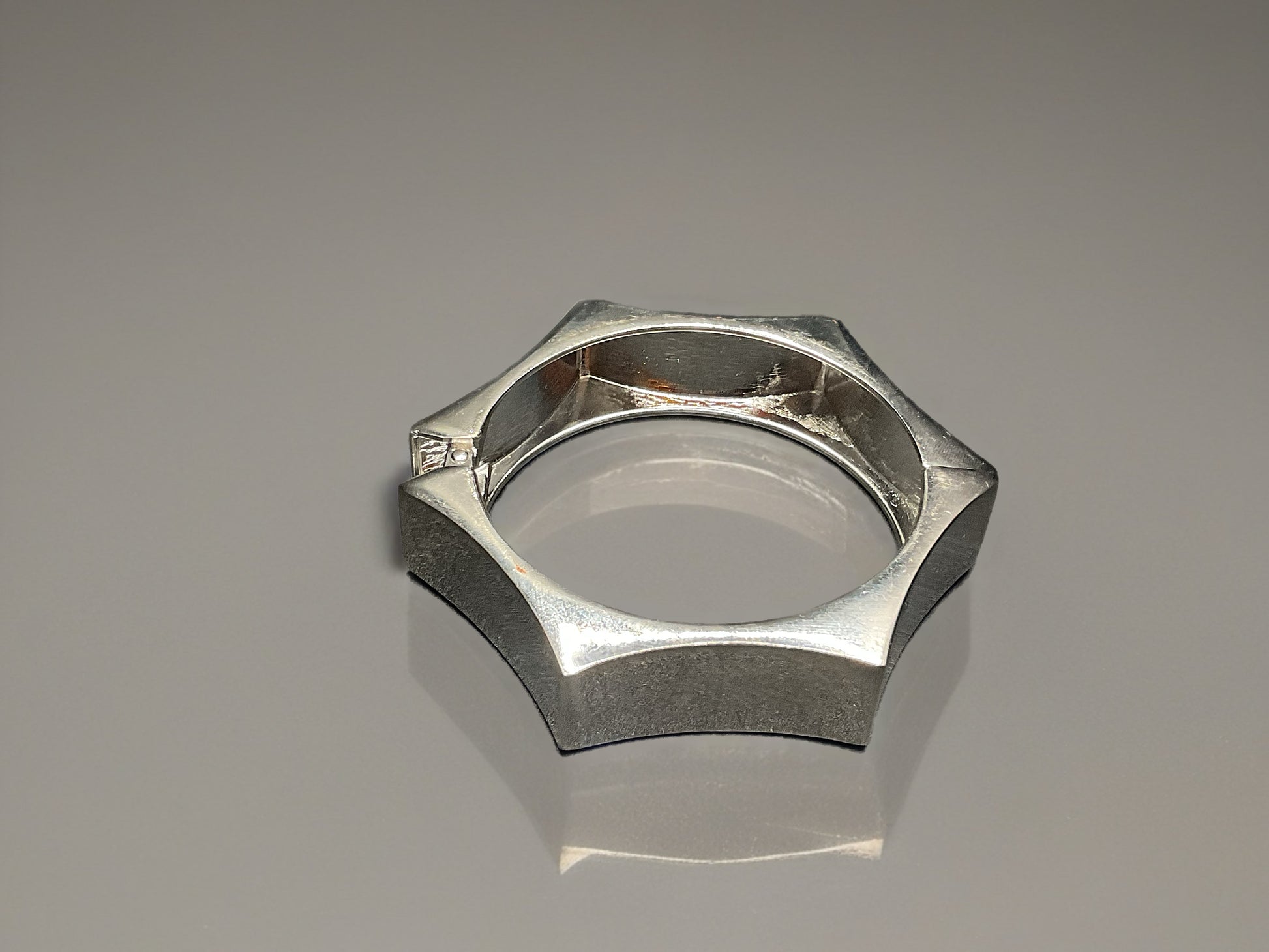 Crafted with precision, this distinctive star-shaped bangle in silver delivers understated sophistication to any ensemble. Its geometric design serves as a refined accessory that seamlessly transitions from casual to formal occasions, making it an essential addition to a well-curated jewelry collection.