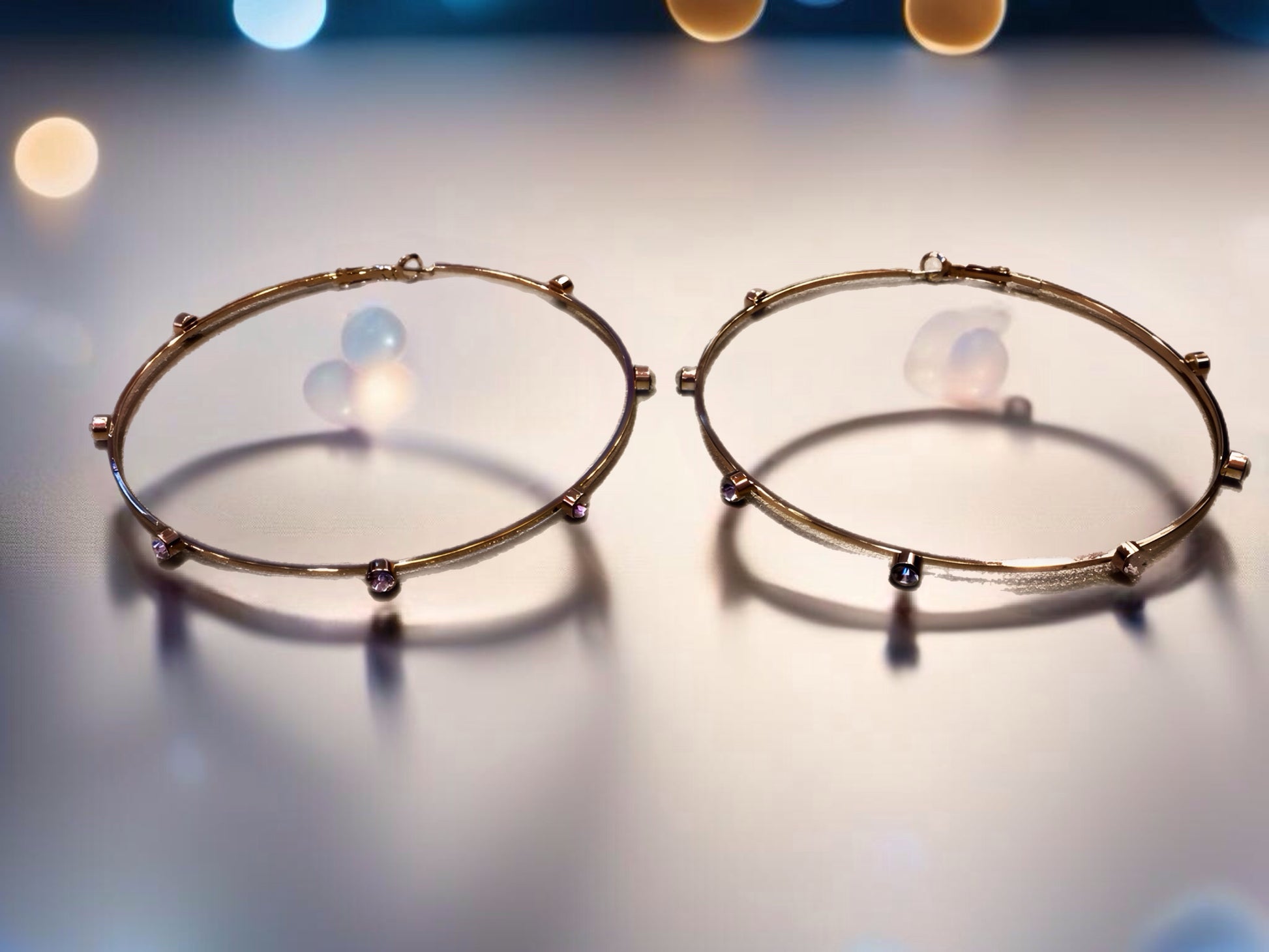These large gold hoops are adorned with exquisite bling that rotates a full 360 degrees, adding an elegant touch to any outfit.